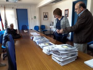 La Gobernadora Provincial, Teresa Núñez, el representante de SENAMA regional, Flabio Villagra, el representante de esta provincia en el Consejo Regional de Mayores y presidente de la UCAM de Paredones, Oscar Yáñez, la representante de la UCAM de Litueche, Cecilia Osorio y la representante de la UCAM de Pichilemu, Vilma Zanetti, quienes dieron fe de la cantidad de proyectos recibidos este año en esta Gobernación.
